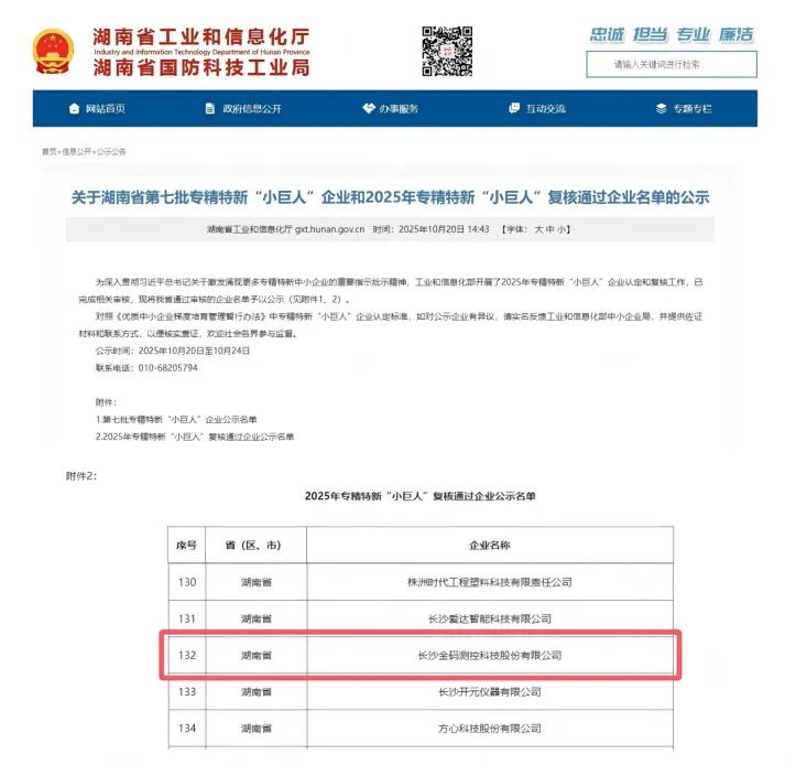 I oktober 2025 har departementet for industri og informasjonsteknologi fullført gjennomgangsprosessen for 2025 "Little Giant"-bedriftene under klassifiseringen "Spesialisert, raffinert, differensial og innovativ" og offisielt publisert listen. Kingmach Measurement & Monitoring Technology Co., Ltd har bestått den strenge gjennomgangen og gjenvunnet denne æren på nasjonalt nivå, takket være dens vedvarende innovasjonsevne, profesjonelle tekniske styrke og stabile markedsytelse.